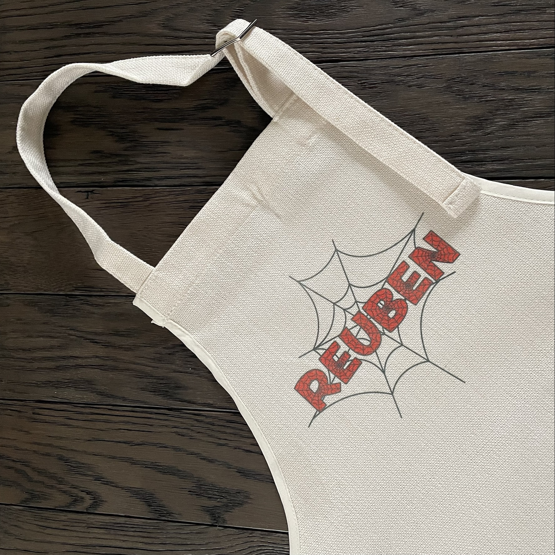 Personalised Children’s Linen Apron – Spiderman Inspired Design