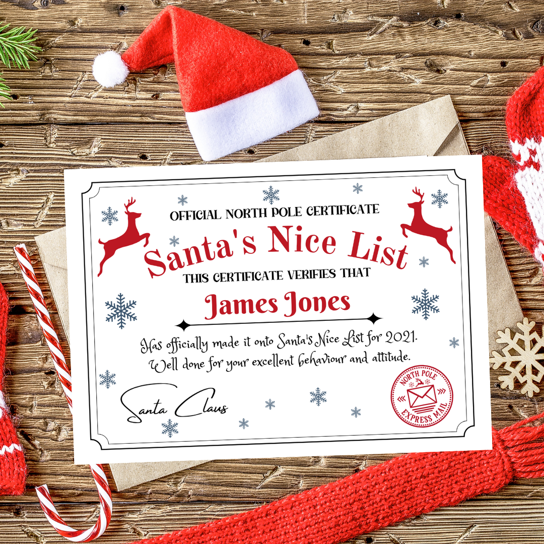 Personalised Santa’s Nice List certificate is an exciting way to congratulate your child for their good behaviour throughout the year and to get ready for Santa and all the magic of Christmas.